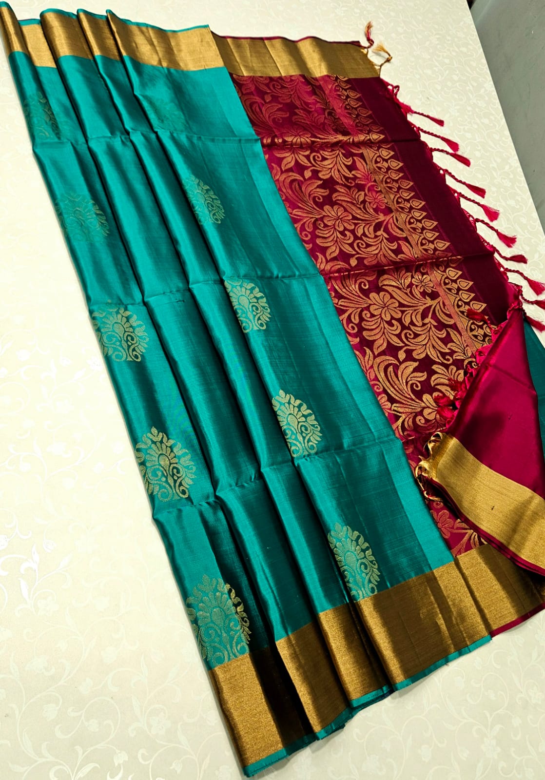contrast pallu and blouse